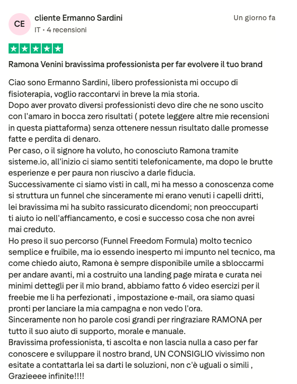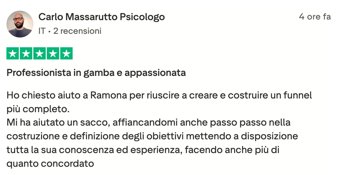 Dipende dal tipo di percorso scelto e dalla complessità del funnel. In media, con il mio supporto diretto, possiamo avere il tuo funnel pronto a partire in 2-4 settimane.